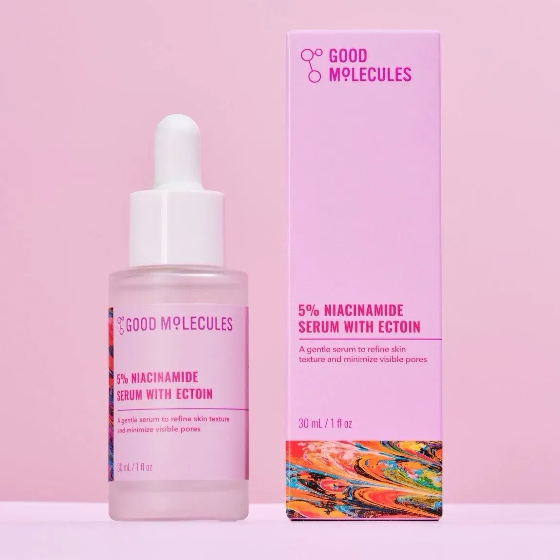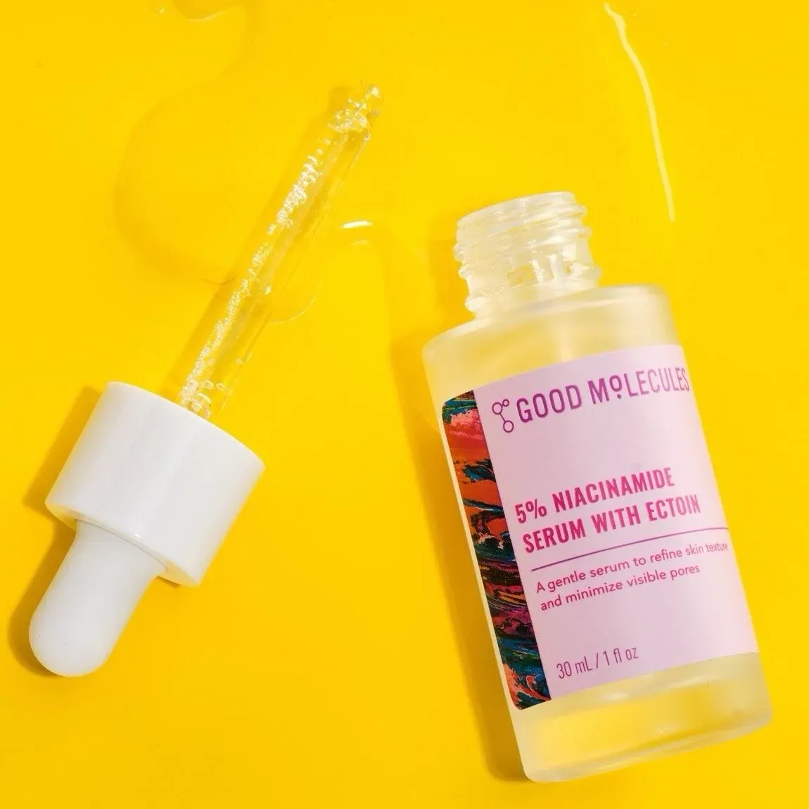 Revitalice su cutis con Good Molecules 5% Niacinamide Serum with Ectoin. Esta fórmula de doble acción hidrata en profundidad a la vez que combate la textura, el tono irregular y los poros dilatados, todo en un solo paso. Ligero y suave pero increíblemente eficaz, combina un 5% de niacinamida para re...
