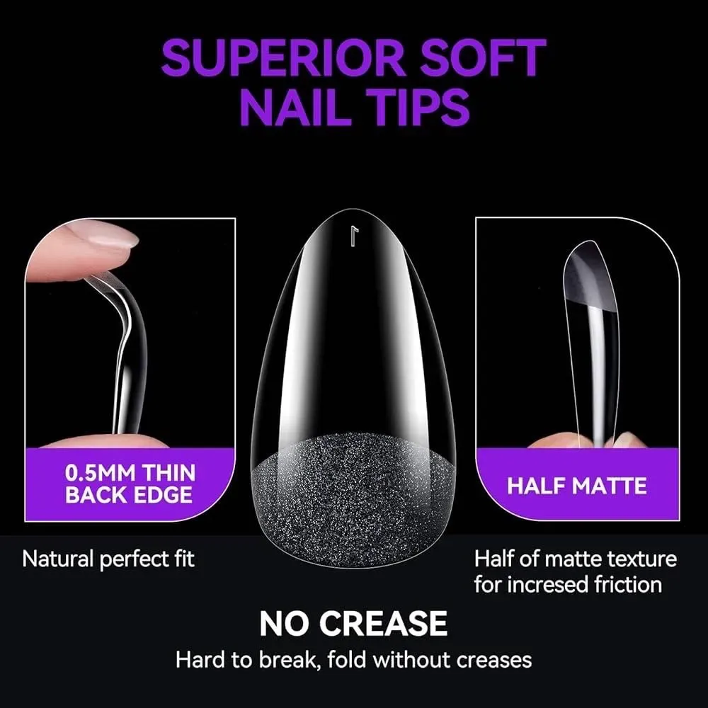 Master Nails soft gel tips Almond Clear 550 Pcs